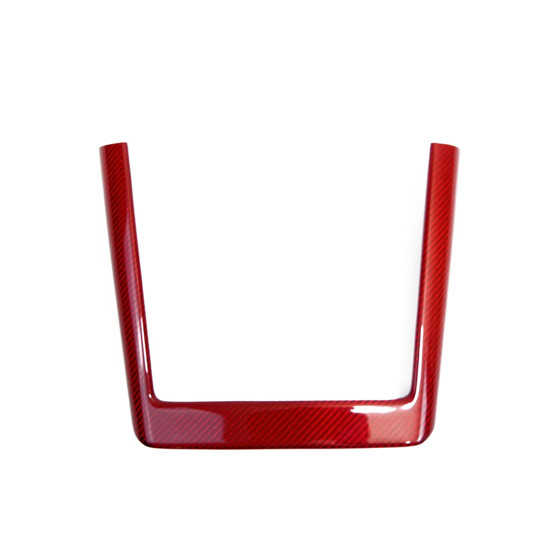 Gloss red carbon fiber cell phone charging port surround trim to complete the look. This facia has been precision engineered with the exact fit for Model 3 2024 Highland.