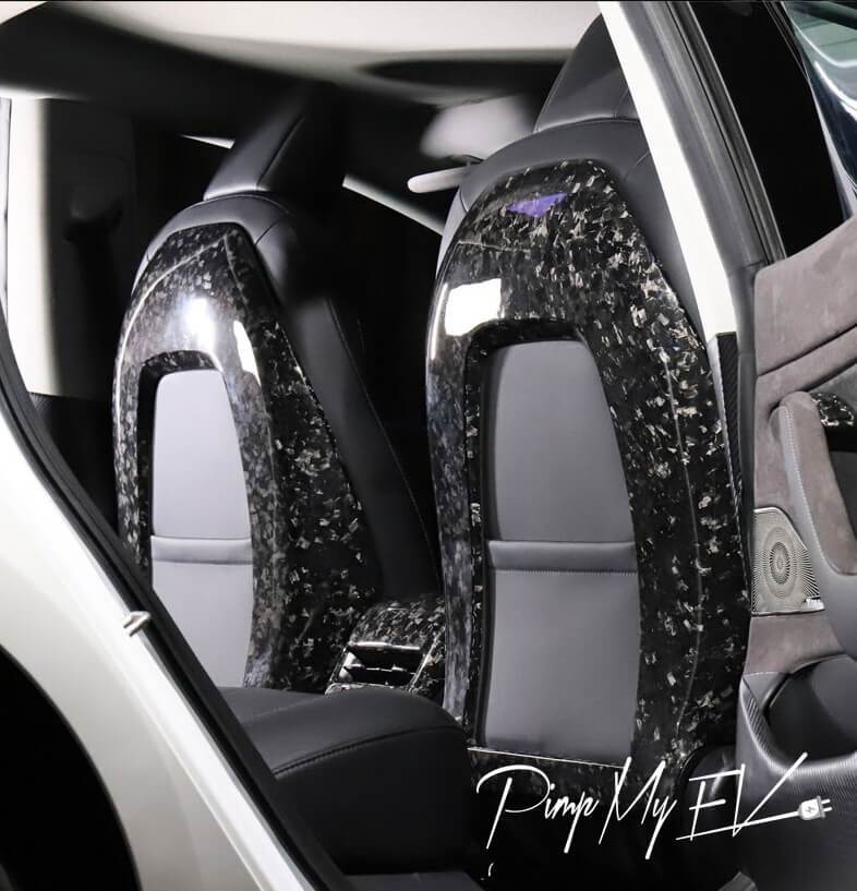 Real forged carbon fiber trims that are precision-engineered to fit Model 3 seats.