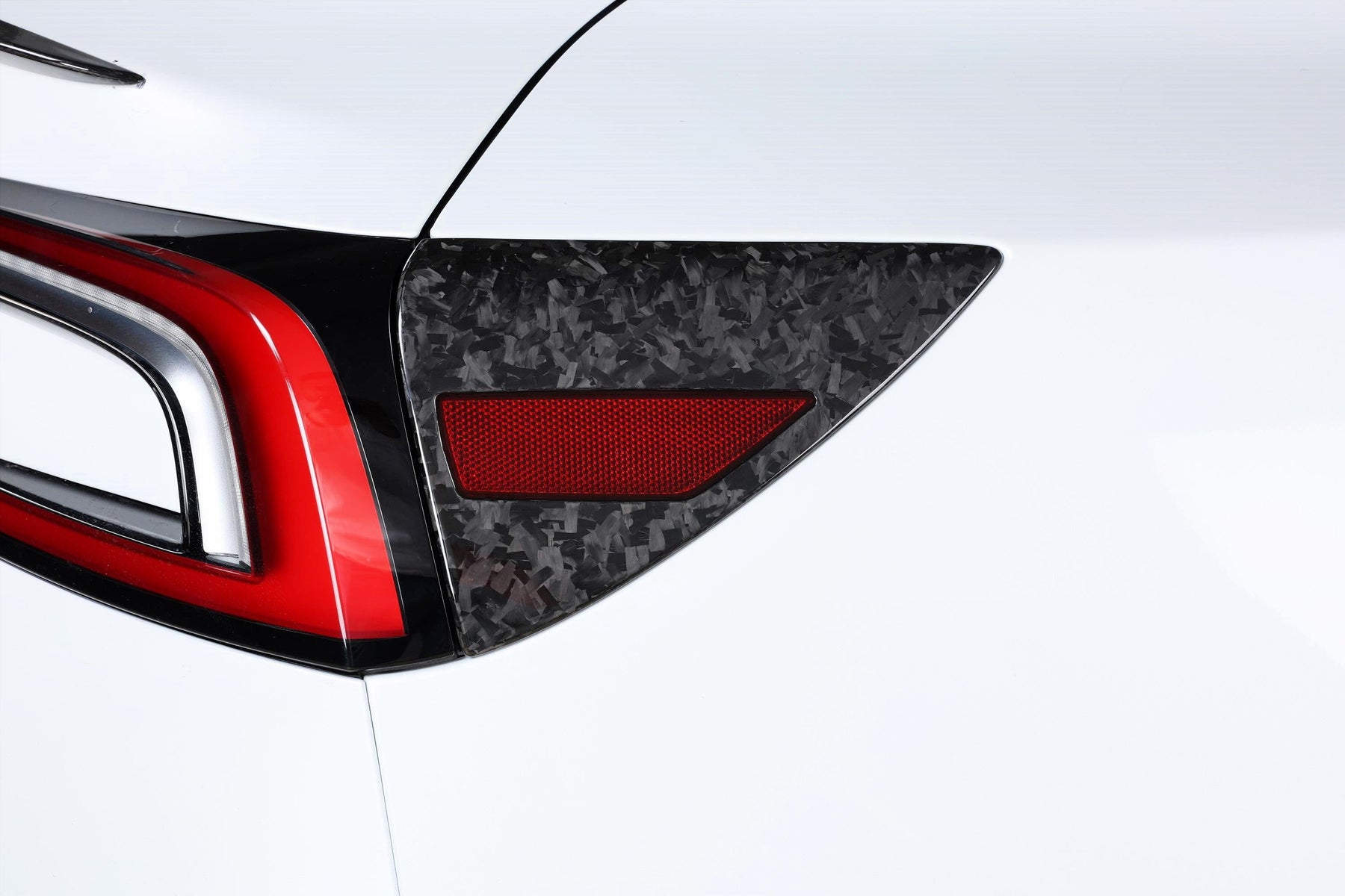Real Molded Forged Carbon Fiber Tail Light Side Overlay Covers Set for Tesla Model 3 2023-2024 Highland - PimpMyEV