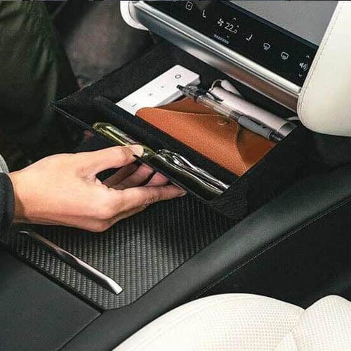 ⇨ Great Storage: Just like other Pimp My EV tesla model x interior accessories, this carbon fiber car console storage tray is a great aftermarket replacement that will help you keep your armrest storage better organized in the long run.