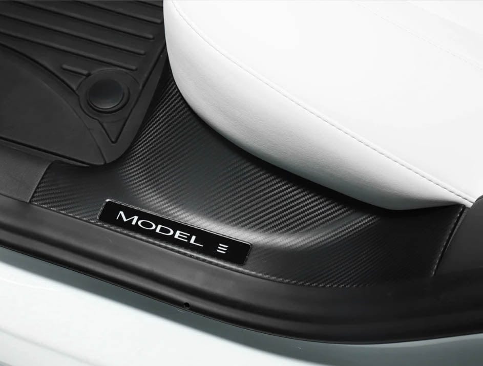 These carbon fiber effect door sill trims will protect and accentuate your Model 3's door sills.