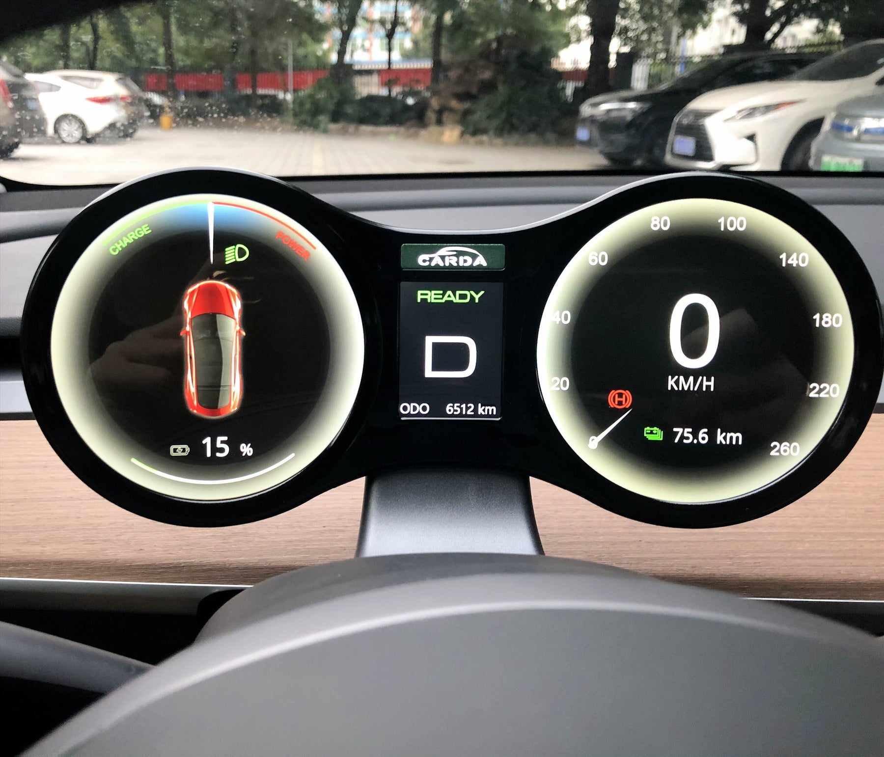 Unique gadget to restore a fully-featured instrument cluster dashboard for Model 3 that sits just behind the driving wheel