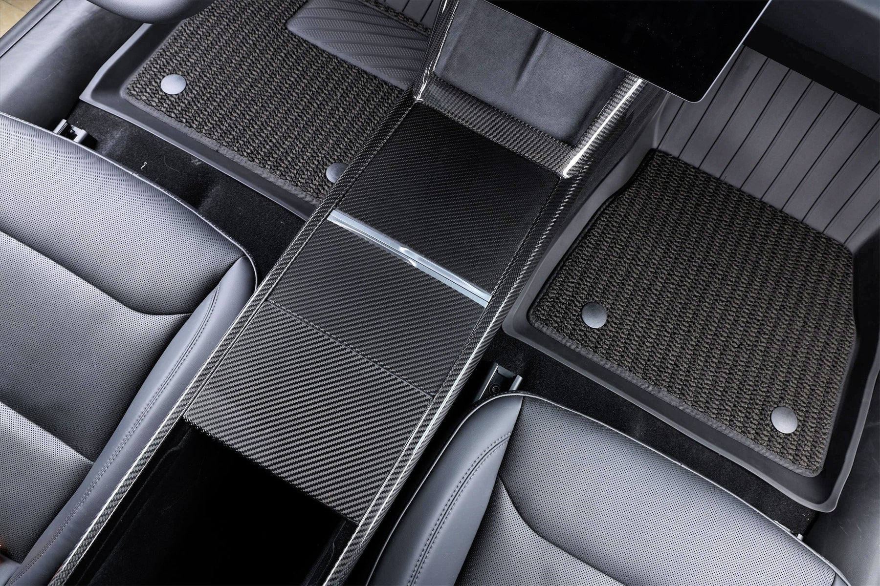 Real Molded Matte Carbon Fiber Center Console Overlay Kit for Tesla Model 3 2023-2024 - PimpMyEV