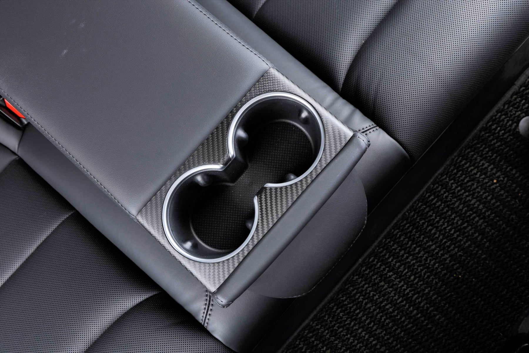 For ultimate quality and an overall superior aesthetic, the Real Molded Matte Carbon Fiber Backseat Cup Holder Overlay for Tesla Model 3 2023-2024 Highland is your ultimate choice. SECURE YOURS NOW!