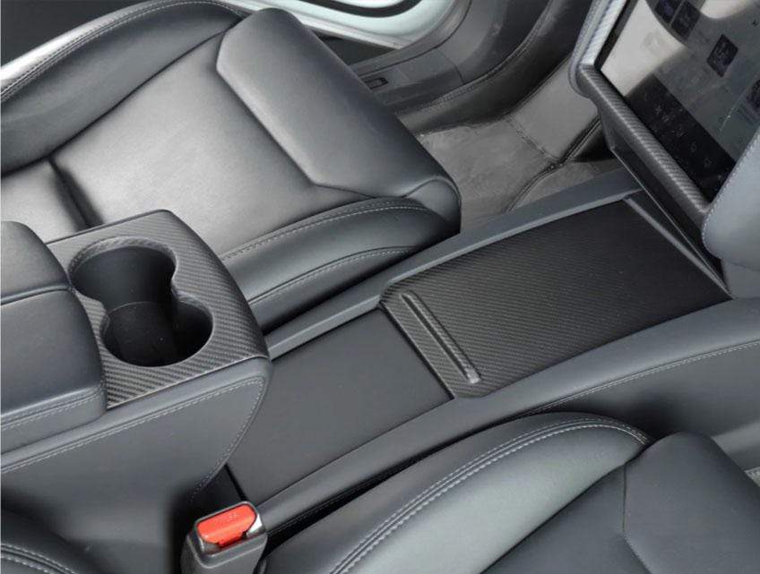 Real carbon fiber trim that is precision-engineered to fit Model S center console sliding cover.Model S Interior Decoration
