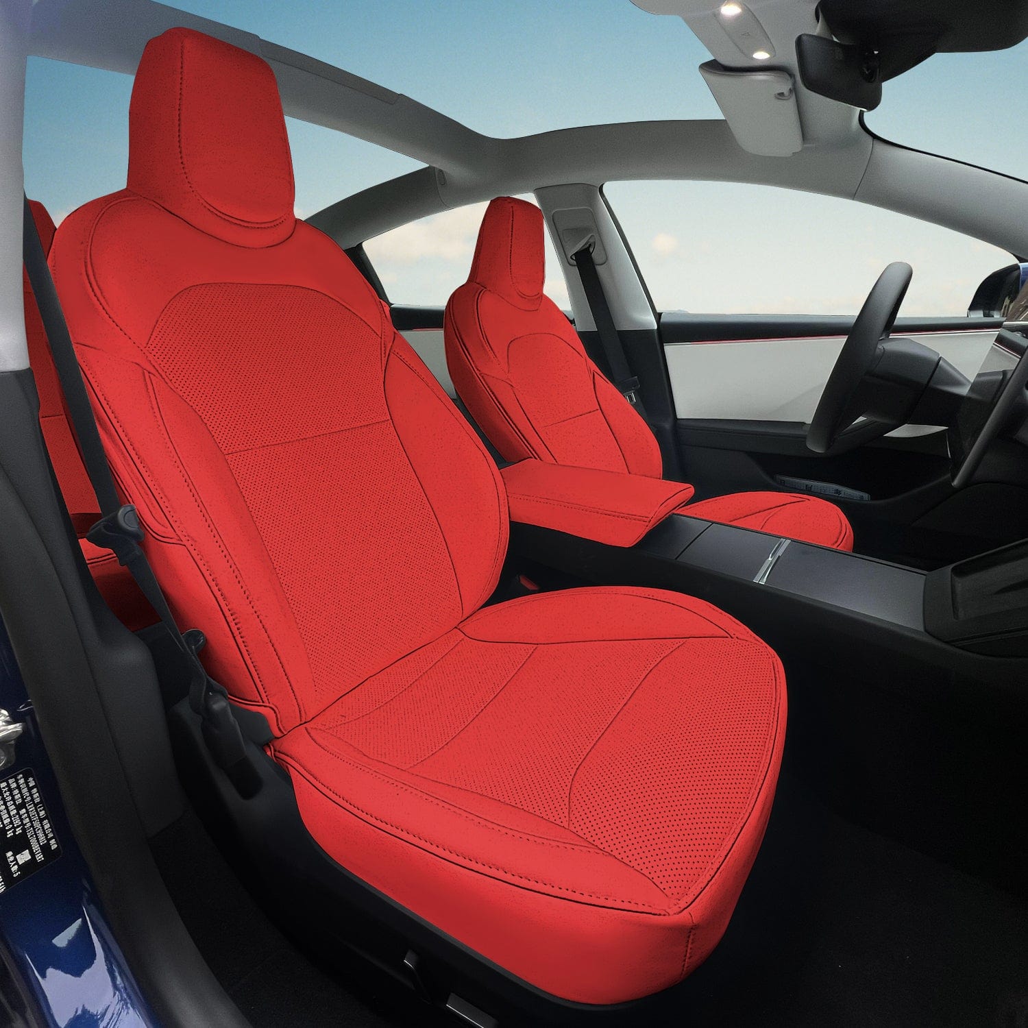 Embrace durability with Vegan Tesla Leather Car Seat Covers, crafted from resilient, smooth material that is easy to clean and provides a comfortable seating experience.