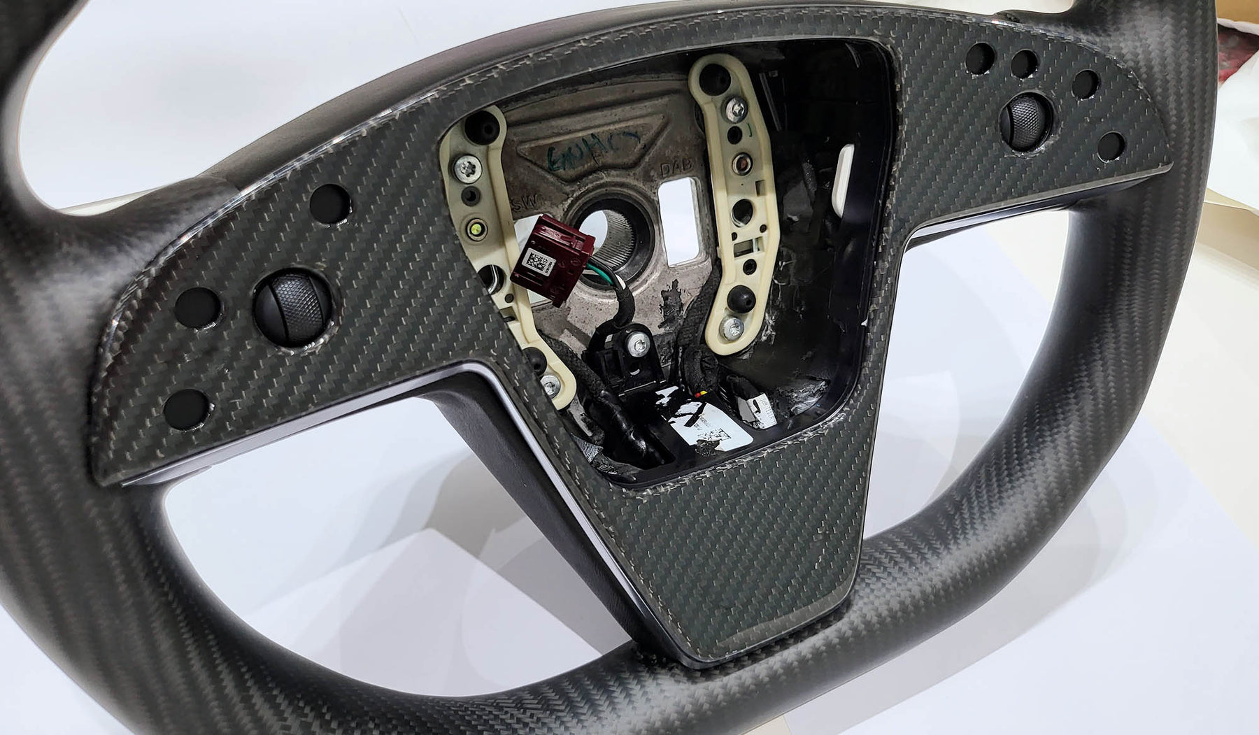 Carbon fiber that is precision-engineered to fit Model X Yoke Steering Wheel