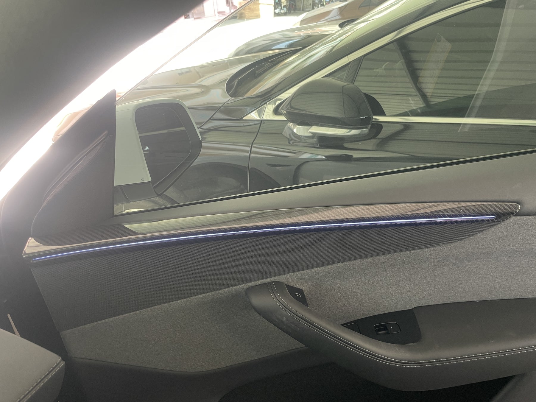 Our carbon fiber door trims feature an ultra-smooth surface, adding to the overall premium feel of your Model Y's interior.