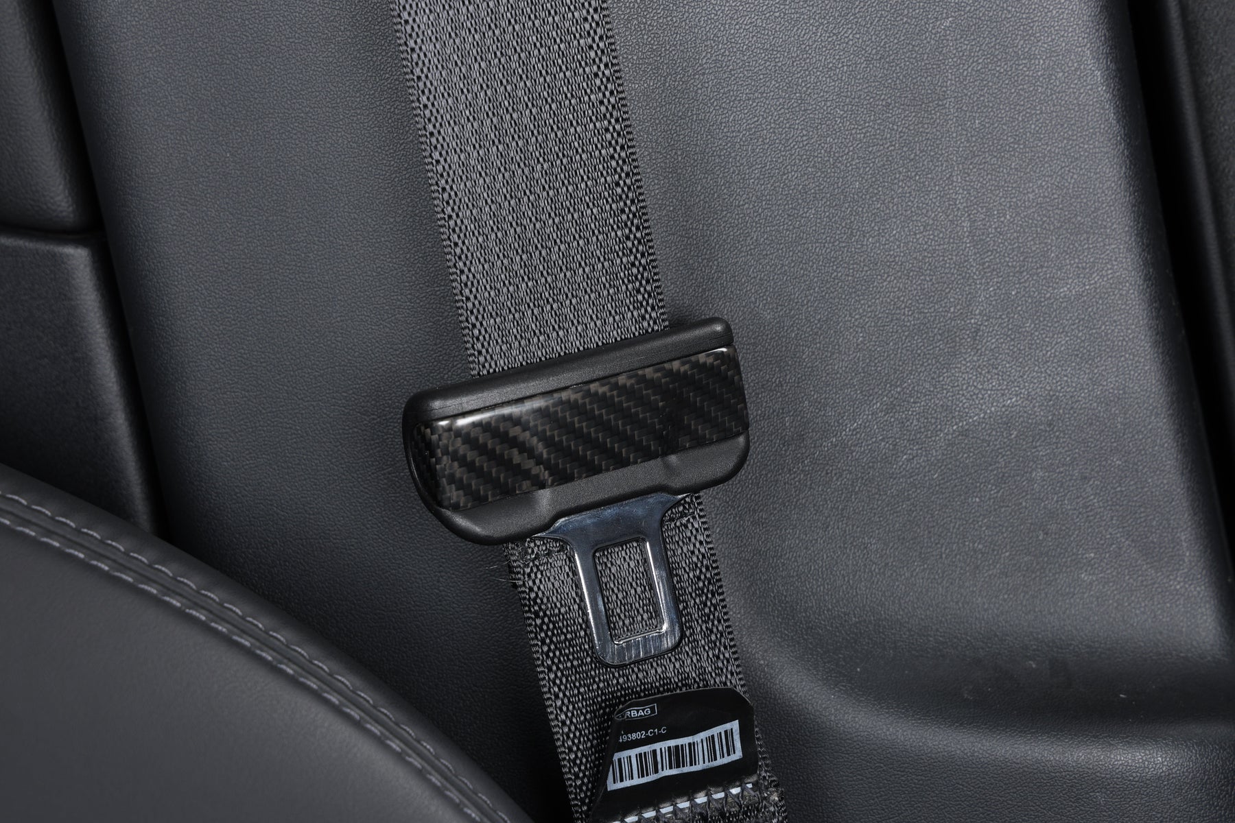 Each refined belt latch protector is made of real, lightweight carbon fibre.