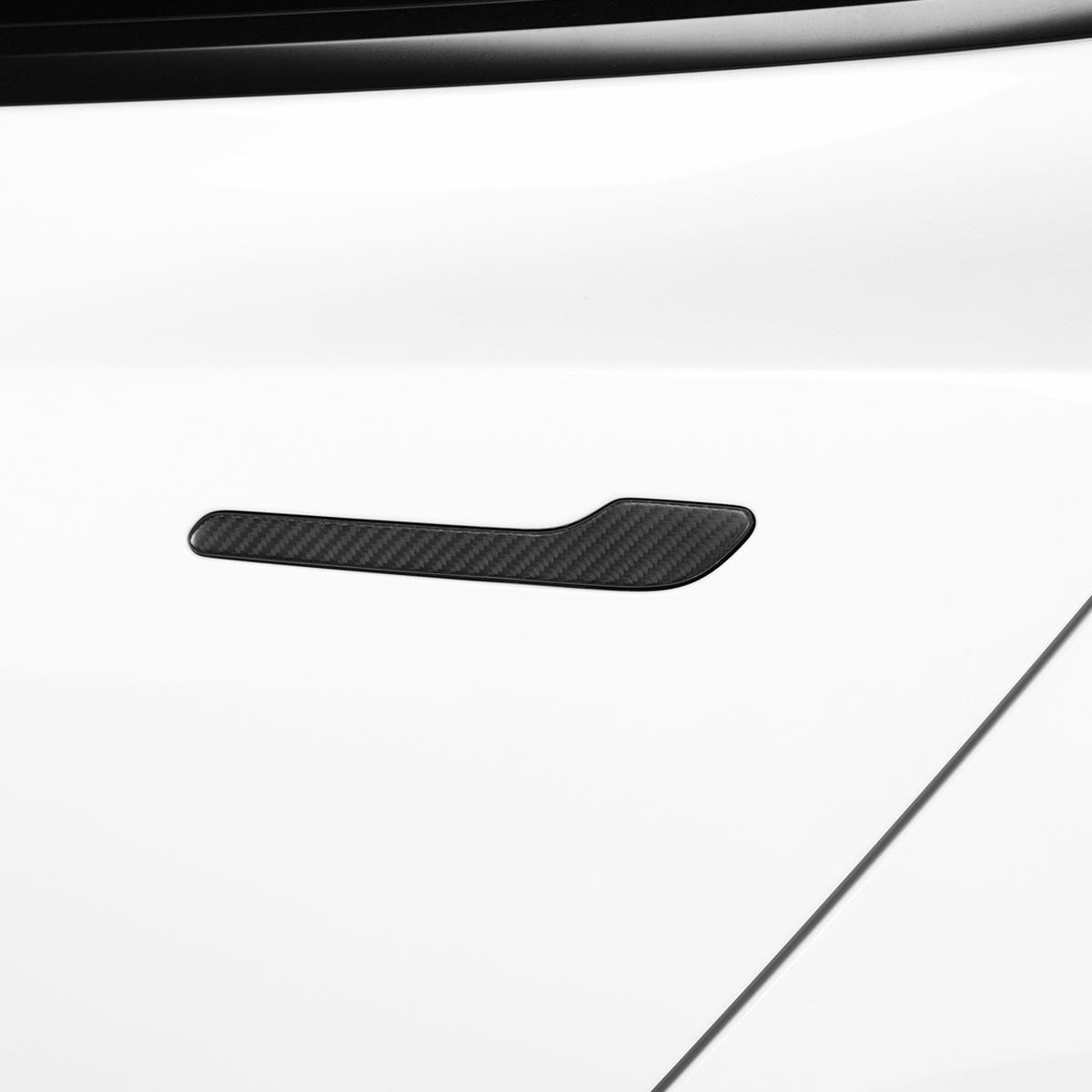 Real Molded Matte Carbon Fiber Door Handle Overlay Covers 4Pcs for Tesla Model 3 2023-2024 Highland - PimpMyEV