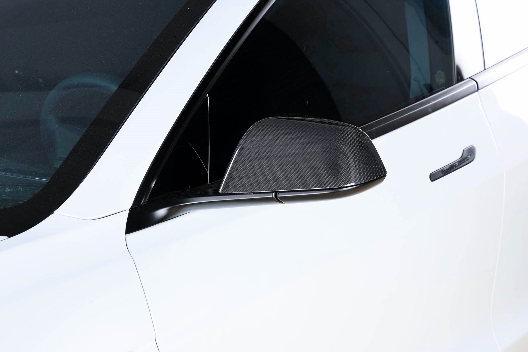For ultimate quality and an overall superior aesthetic, the Real Molded Gloss Carbon Fiber Side Mirror Overlay Covers for Tesla Model 3 2023-2026 Highland is your ultimate choice. SECURE YOURS NOW.