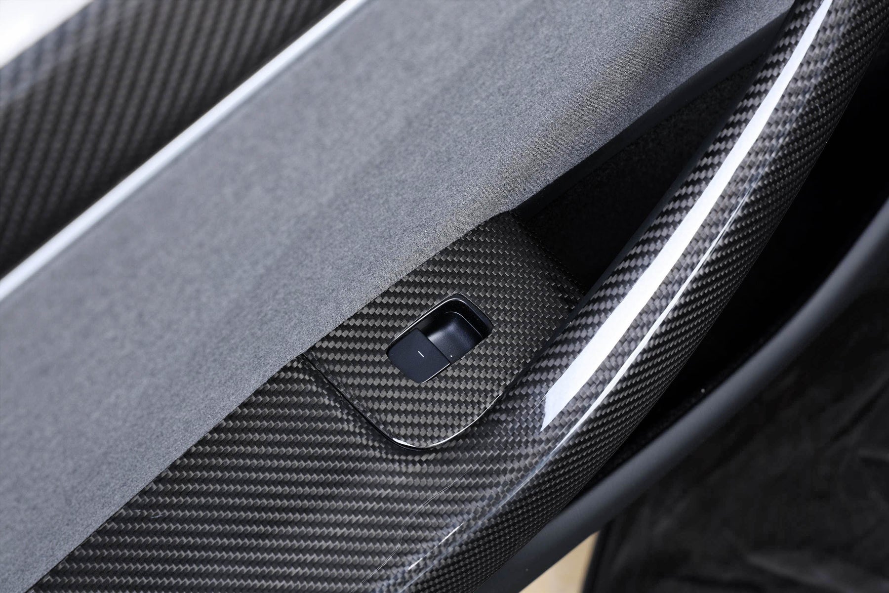 Real gloss carbon fiber trims that are precision-engineered to fit Model 3 Highland Window control panels.