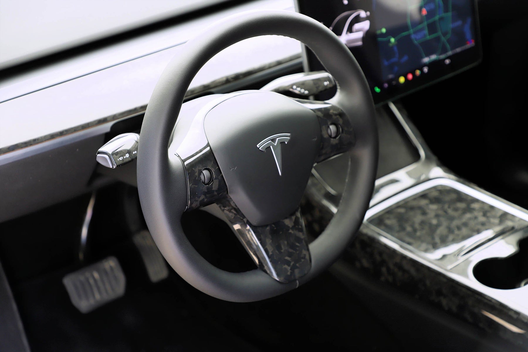 Real forged carbon fiber trims that are precision-engineered to fit Model 3 center console.