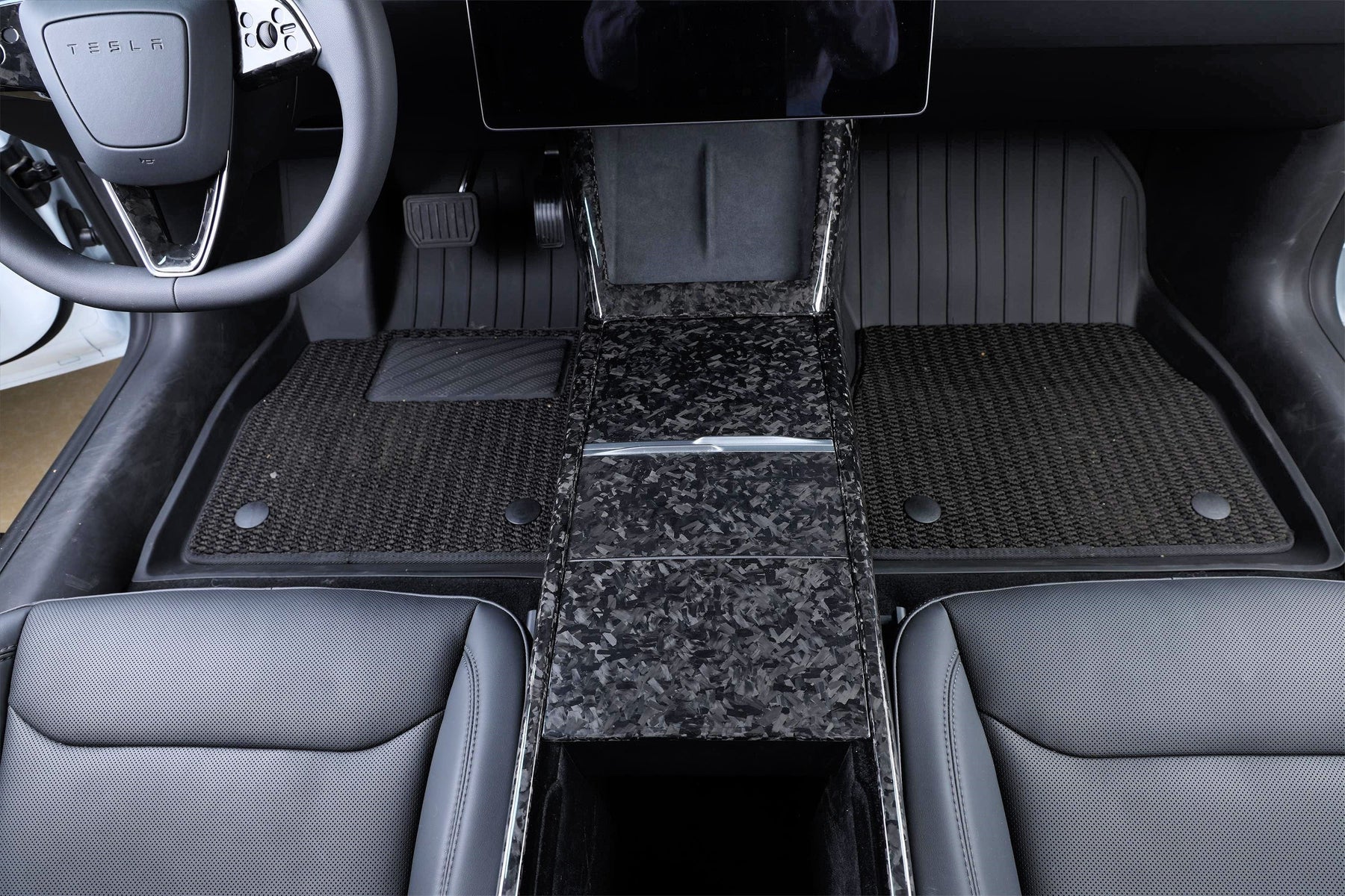 Real Molded Forged Carbon Fiber Center Console Overlay Kit for Tesla Model 3 2023-2024 - PimpMyEV