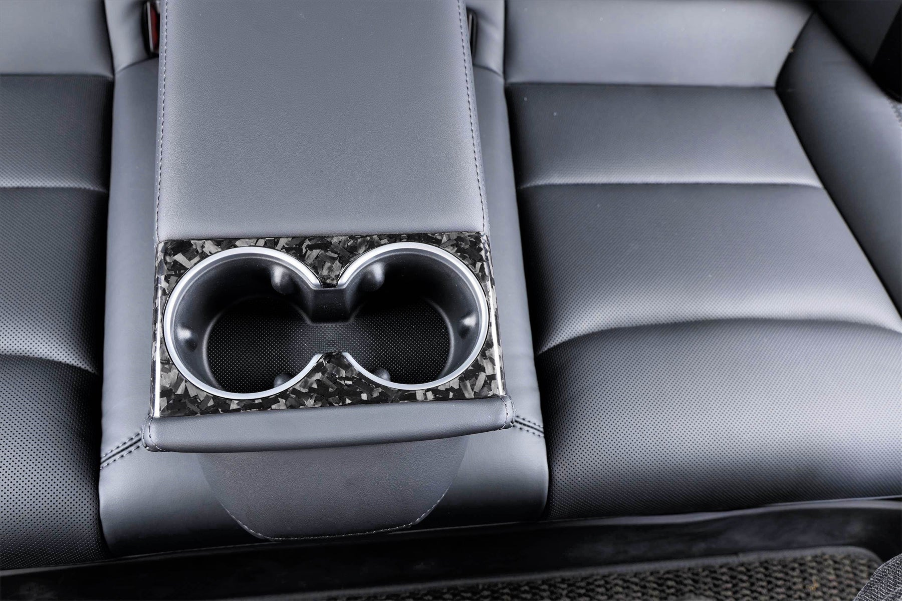 Real Molded Gloss Forged Carbon Fiber Backseat Cup Holder Overlay for Tesla Model 3 2023-2024 Highland - PimpMyEV
