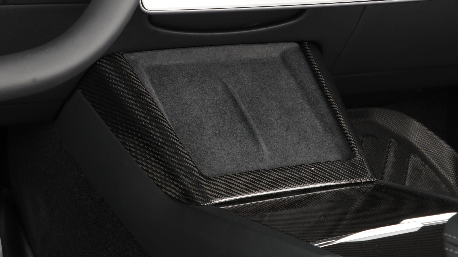 Real gloss carbon fiber trims that are precision-engineered to fit Model 3 2026 mobile charger.