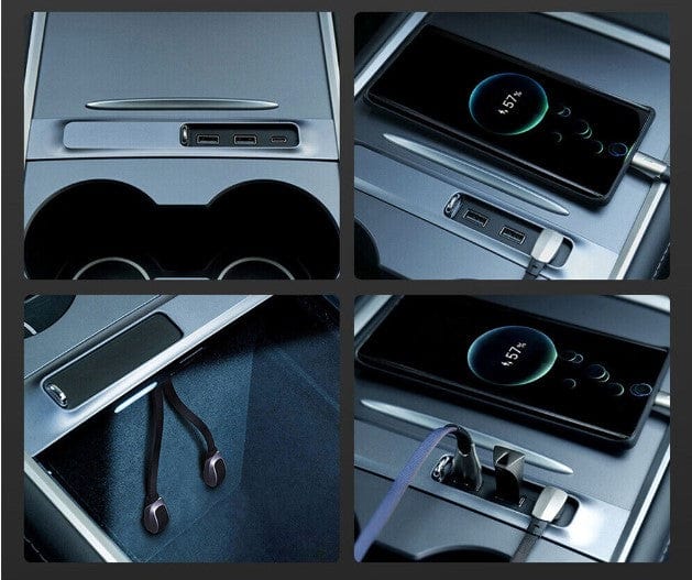 Our Center Console USB-C Hub V2 enhances Tesla Model Y driving. This hub's flawless integration with your car provides unmatched convenience and connectivity.