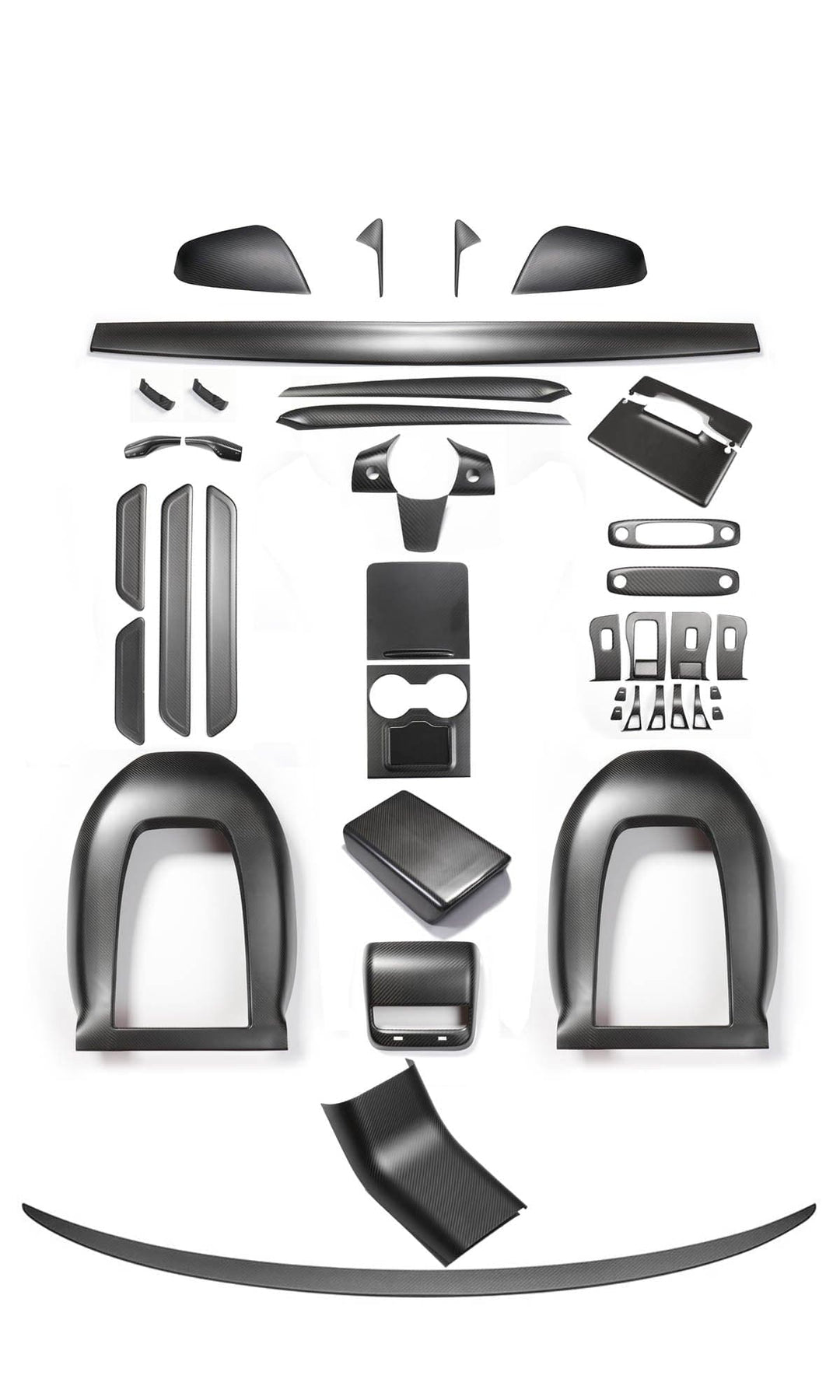 For ultimate quality and an overall superior aesthetic, the Ultimate Real Molded Matte Carbon Fiber Bundle Kit For Tesla Model 3 2021-2023 is your ultimate choice. SECURE YOURS NOW.