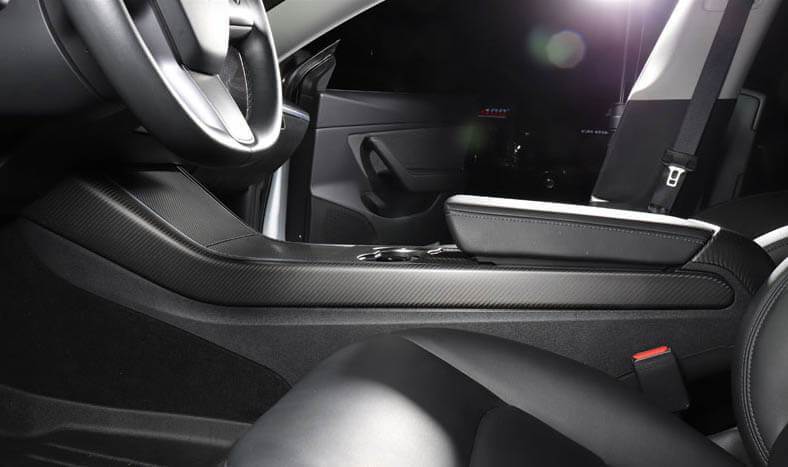 Matte carbon fiber center console side trims to complete the look. These fascias have been precision engineered with the exact fit for Model Y.