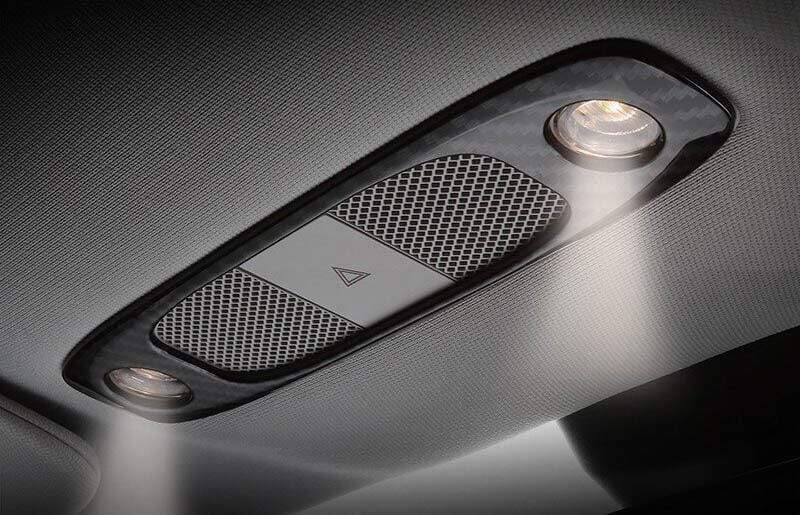 Carbon fiber trims that are precision-engineered to fit Model 3 cockpit lights.