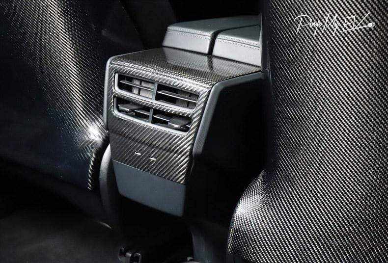 Real carbon fiber trim that is precision-engineered to fit Model S rear air vents.