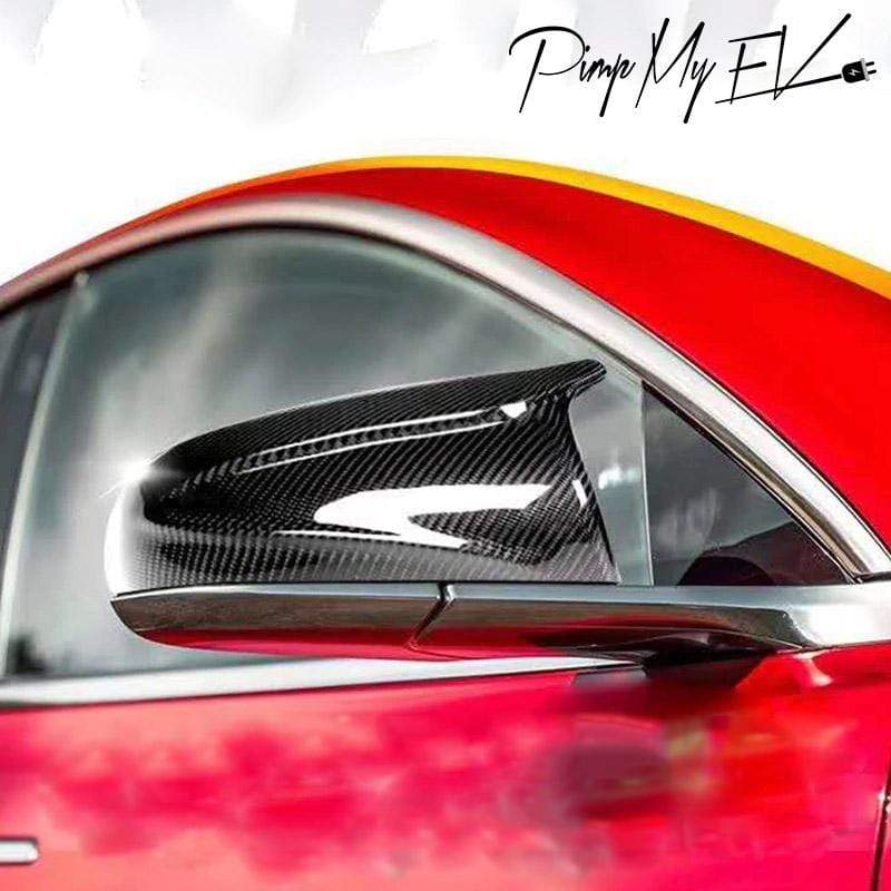 2PCs Genuine Carbon Fiber Winged Side Mirror Replacement Set for Model 3 - PimpMyEV Free Shipping