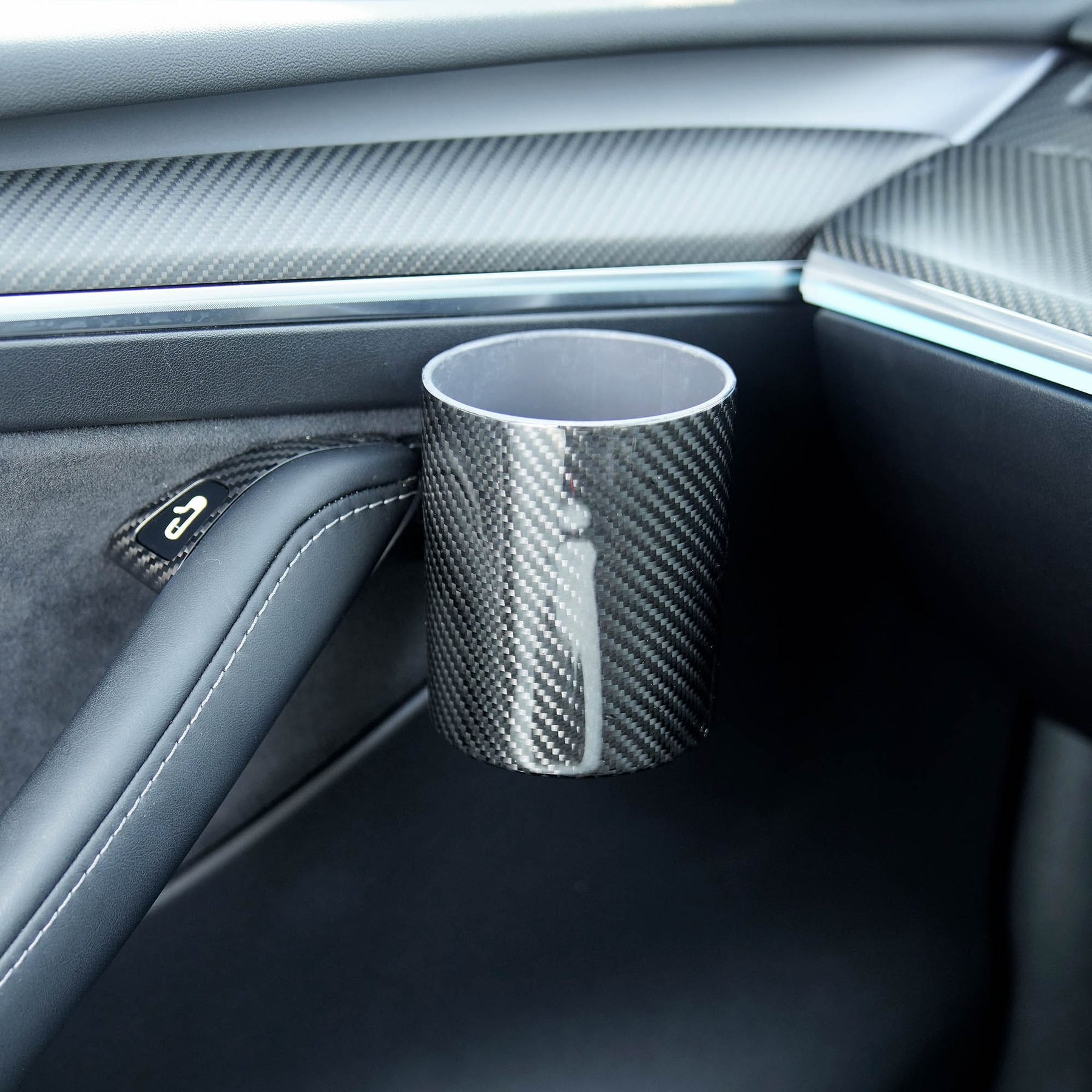 Reintroducing the Familiar Door Cup Holders, Located Adjacent to Your Tesla Model 3 and Model Y Dashboard! Crafted from durable ABS material with a genuine carbon fiber overlay! The Version 3 of these door cup holders is now longer, akin to Version 2, providing accommodation for larger cups, glasses, and beverages. Dimensions: Height: 9.5cm or 3.74 inches Width: 8cm or 3.14 inches