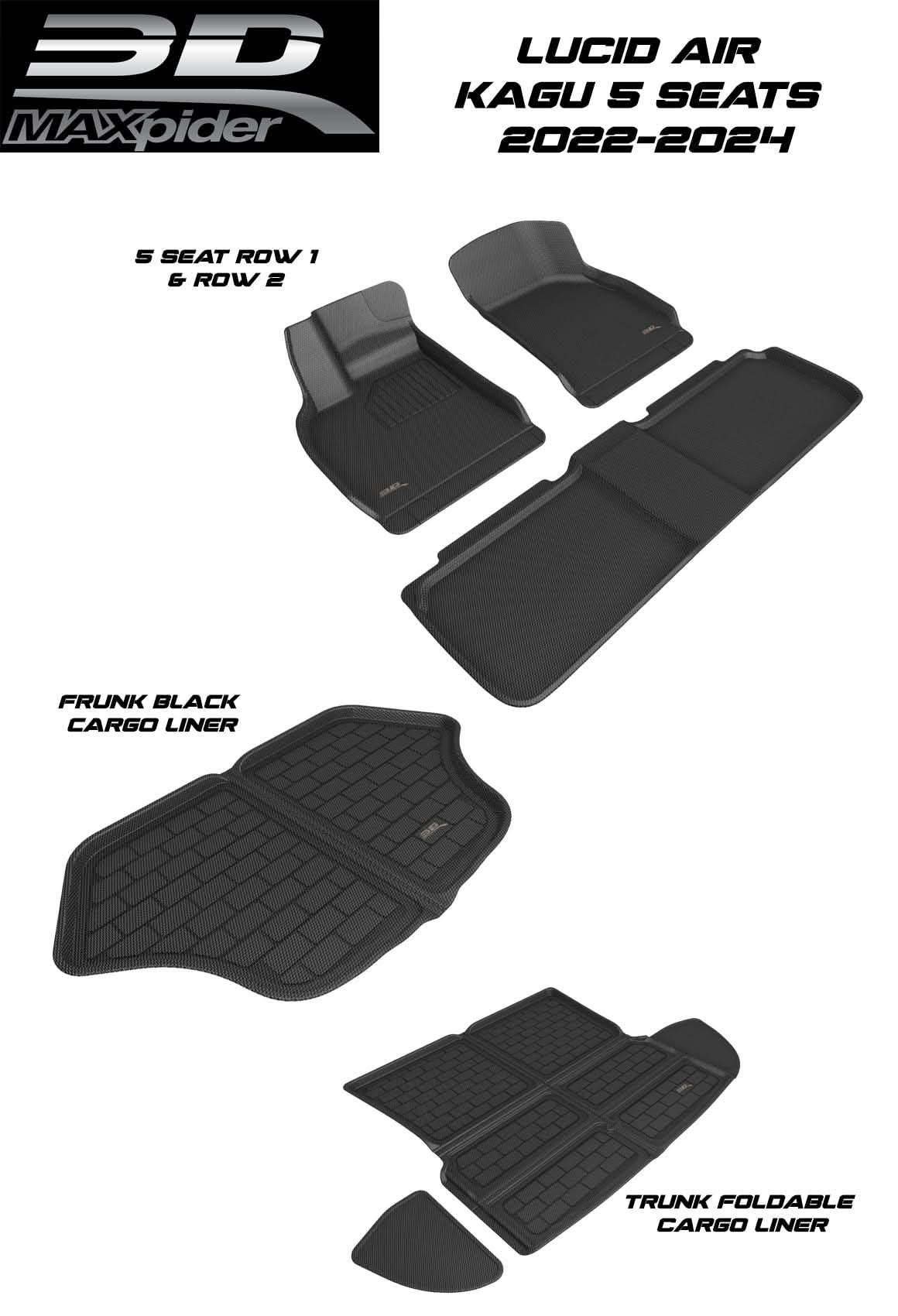 For ultimate quality and an overall superior aesthetic, the 3D MAXpider Custom Fit All-Weather KAGU BLACK Series LHD Floor Mats For Lucid Air 5 SEAT 2022-2024 is your ultimate choice. SECURE YOURS NOW.