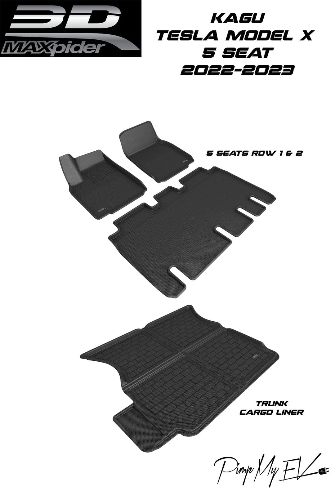 OFFICIAL 3D MAXPIDER ELEGANT FLOOR MATS TESLA MODEL X 5 SEATS 2022-2026 2022 REFRESH AND PLAID COMPATIBLE LEFT HAND DRIVE