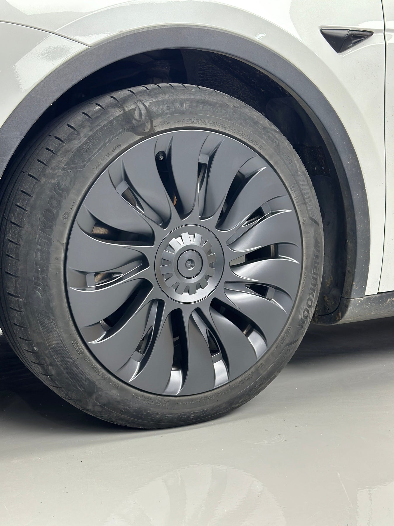Give your Tesla Model Y Whirlwind Style Wheels with these amazing wheel covers that fit the 19 inch Gemini wheels.