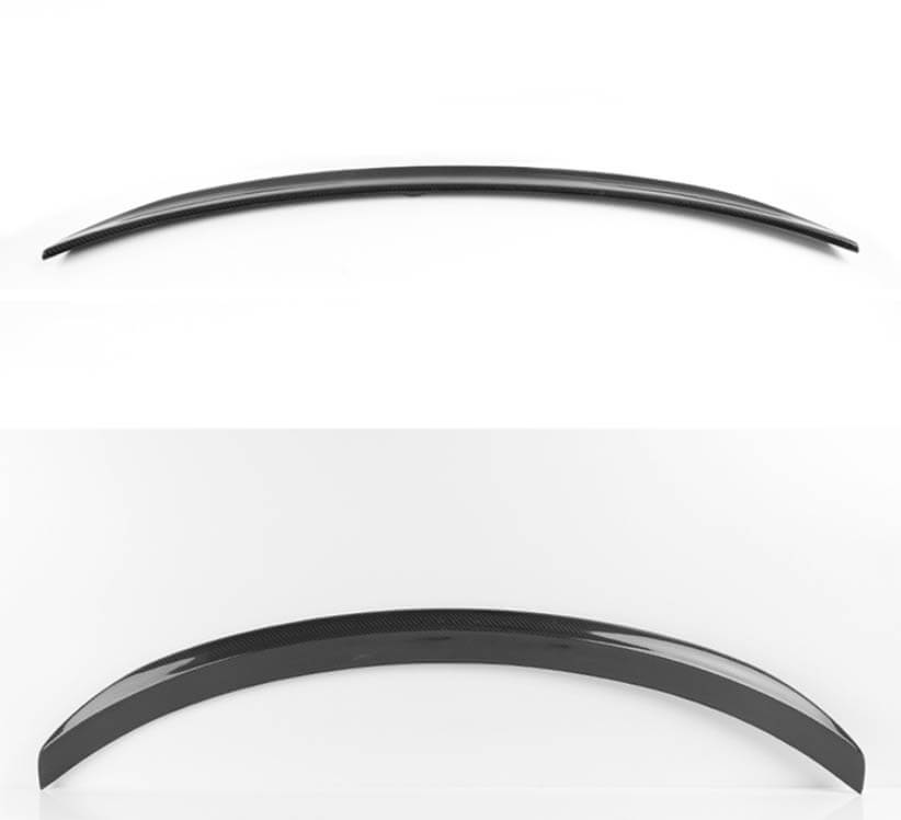 Water transfer carbon fiber spoiler that is precision-engineered to fit Model 3 trunk.