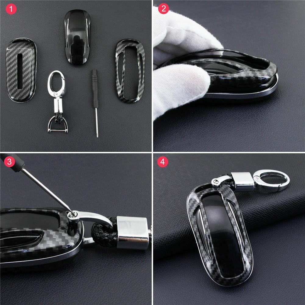 The key case snaps on to the existing key fob with the supplied screwdriver. The measurements are an exact fit for your Model X key fob.PRODUCT INFORMATION