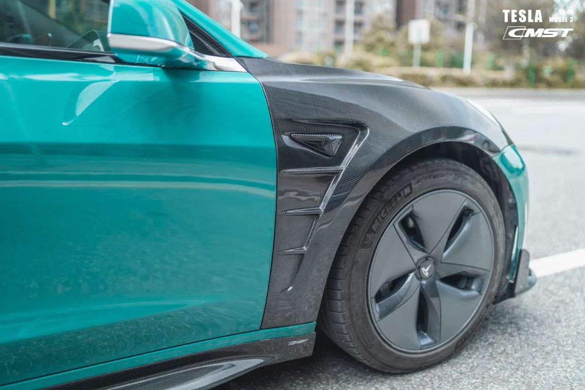For ultimate quality and an overall superior aesthetic, the CMST 2Pcs Real Molded Carbon Fiber Front Fender Replacements For Tesla Model 3 2017-2023 is your ultimate choice. SECURE YOURS NOW.