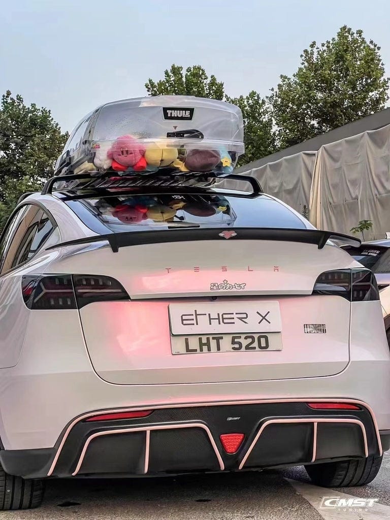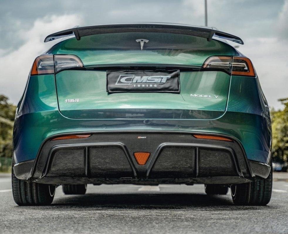 USE THE CMST TUNING CARBON FIBER REAR SPOILER VER 2 TO UPGRADE YOUR TESLA MODEL Y