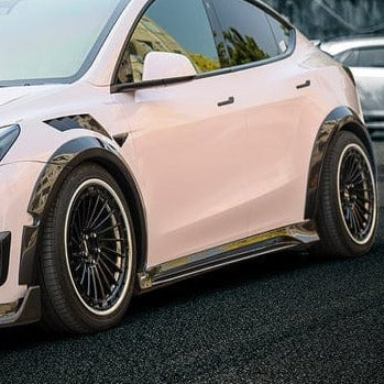 The CMST Genuine carbon fiber side skirt diffuser extensions V2 have a sleek and powerful design that matches the look of the Model Y. This sport carbon fiber side skirt gives your car a little bit of a sporty and sophisticated look.