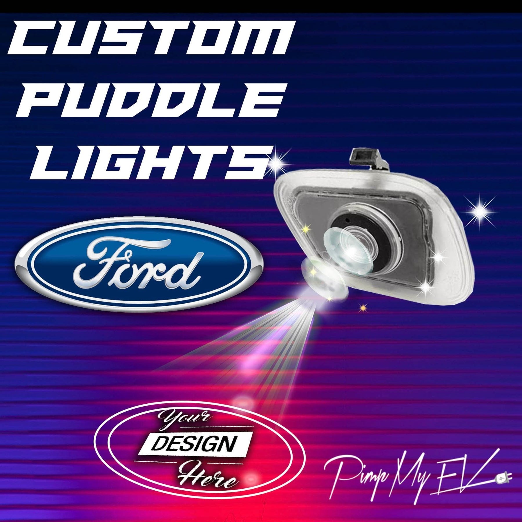 The service includes custom designing for the lens that sits in side your puddle lights. The puddle lights are then installed in to your doors. They are replacement lights and are an exact fit for your chosen Ford F150 12th Gen FX4 vehicle.