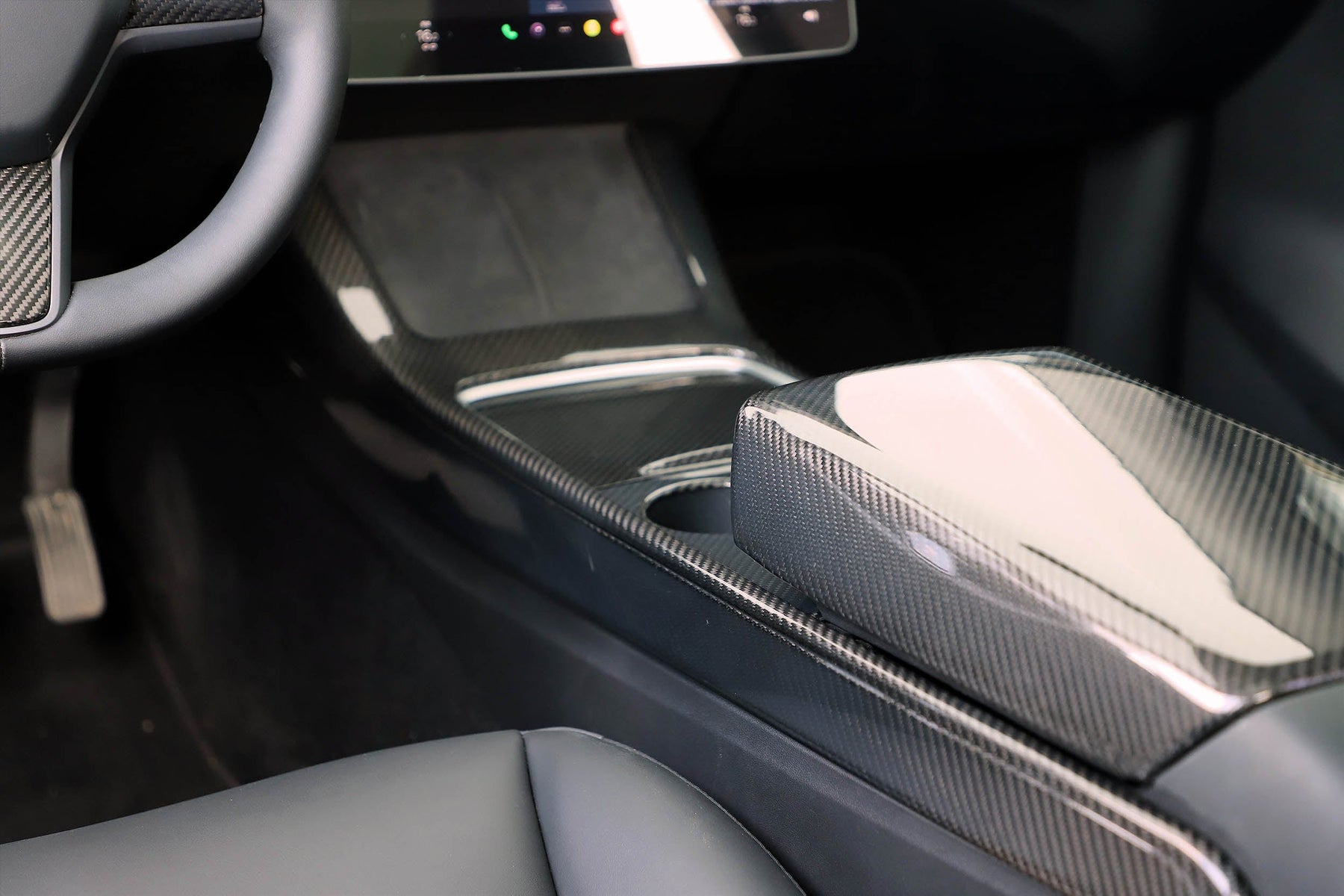 Genuine Carbon Fiber Center Console Full Coverage Facia for Tesla Model 3 (Gloss) 2021-2023 - PimpMyEV Free Shipping