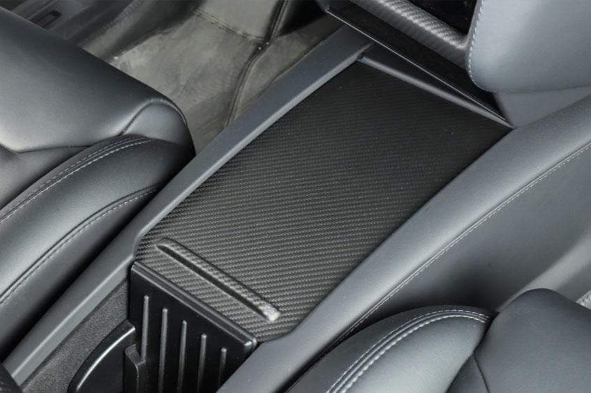 Real carbon fiber trim that is precision-engineered to fit Model X center console sliding cover.