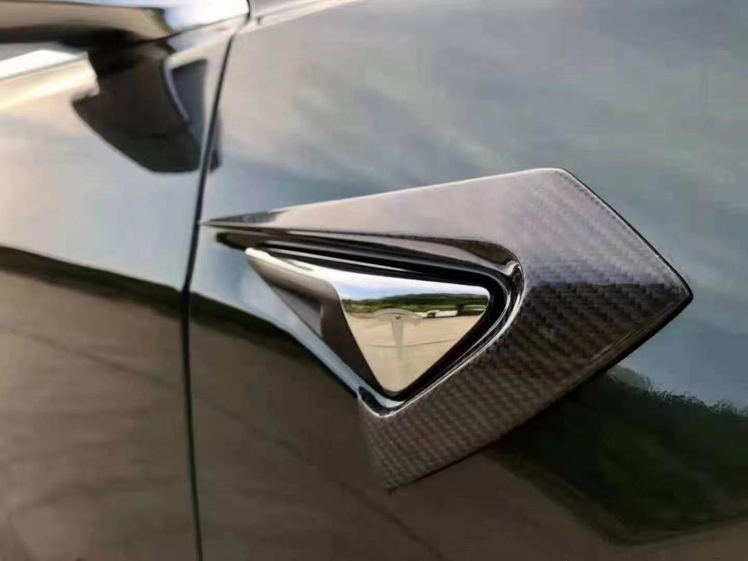 Real matte carbon fiber trims that are precision-engineered to fit Model Y side cameras.