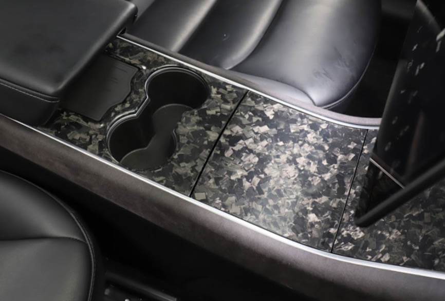 For ultimate quality and an overall superior aesthetic, the Real Molded Gloss Forged Carbon Fiber Center Console Overlay Kit for Tesla Model Y 2020 is your ultimate choice. SECURE YOURS NOW.