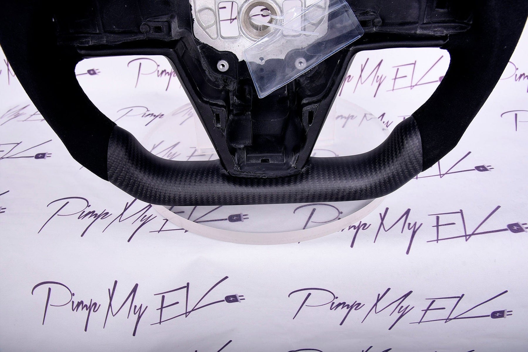 Yoke Shape: Lifted Base Cockpit For Model S / X 2022+ Yoke Style: Half leather half carbon Carbon Fiber Finish: Matte Carbon Fiber Grip Option: Black alcantara Stitching Colors: Black Heated steering: Without heated steeringPRODUCT INFORMATION