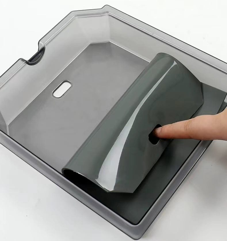 Made of durable plastic, the center console tray of Tesla Model 3 is robust and durable, with non-slip flocking material inside that is odorless. The Model 3 Center Console Trays are composed of sturdy and soft rubber.
