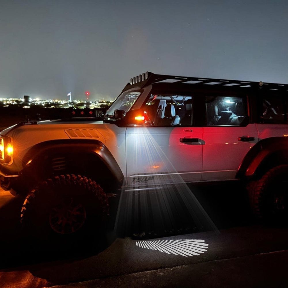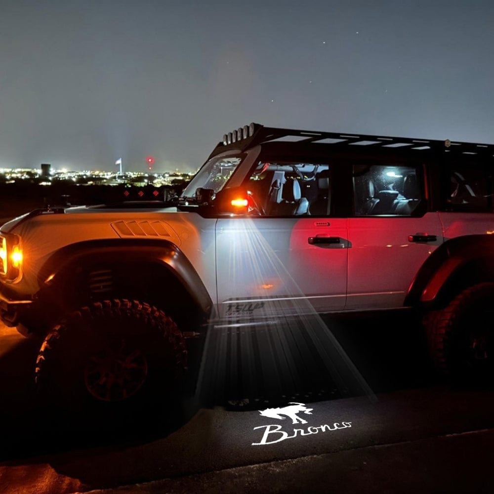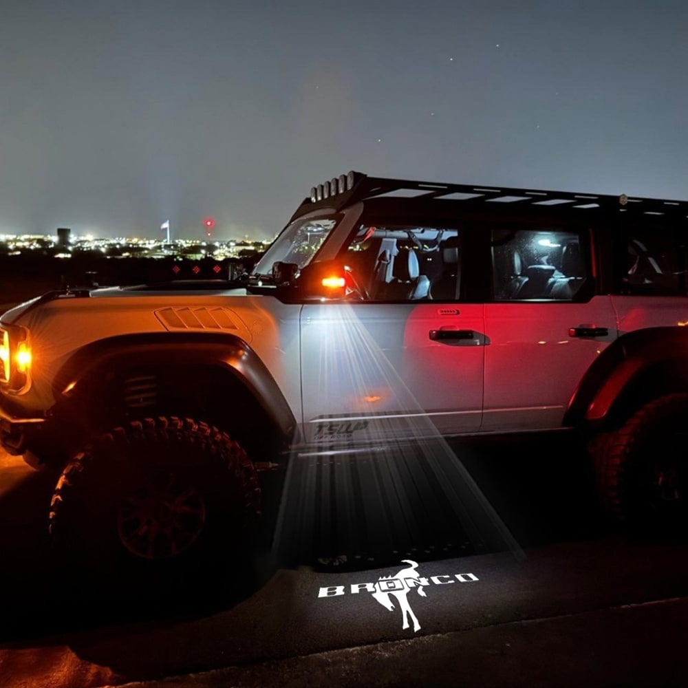 Our Ford Bronco puddle lights not only enhance the look of your vehicle but also provide added safety and convenience. Whether you’re stepping out of your car on a dark evening or simply want to make a statement of luxury, these lights offer a perfect blend of functionality and style.
