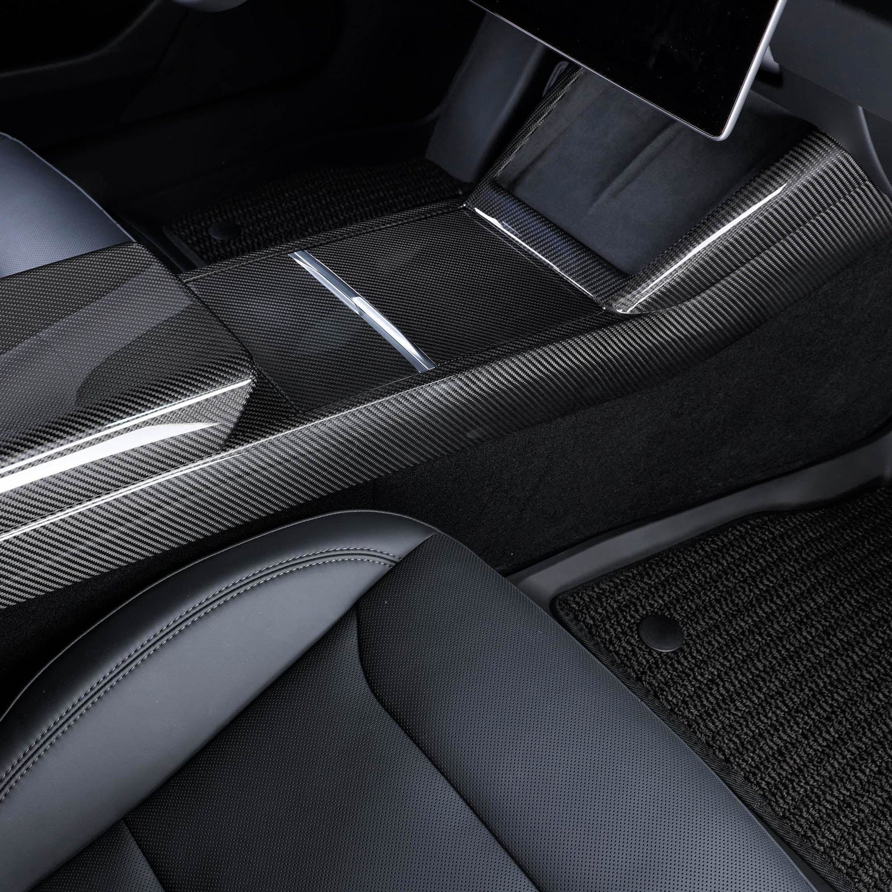 Real Molded Gloss Carbon Fiber Center Console Full Coverage Overlay Cover for Tesla Model 3 2023-2024 Highland - PimpMyEV Free Shipping