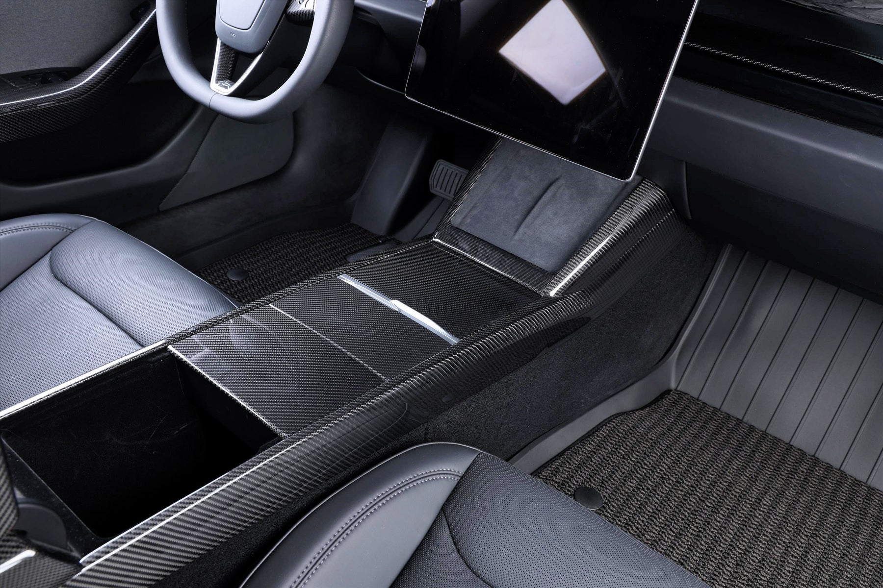 Real carbon fiber trims that are precision-engineered to fit Model Y Juniper center console.