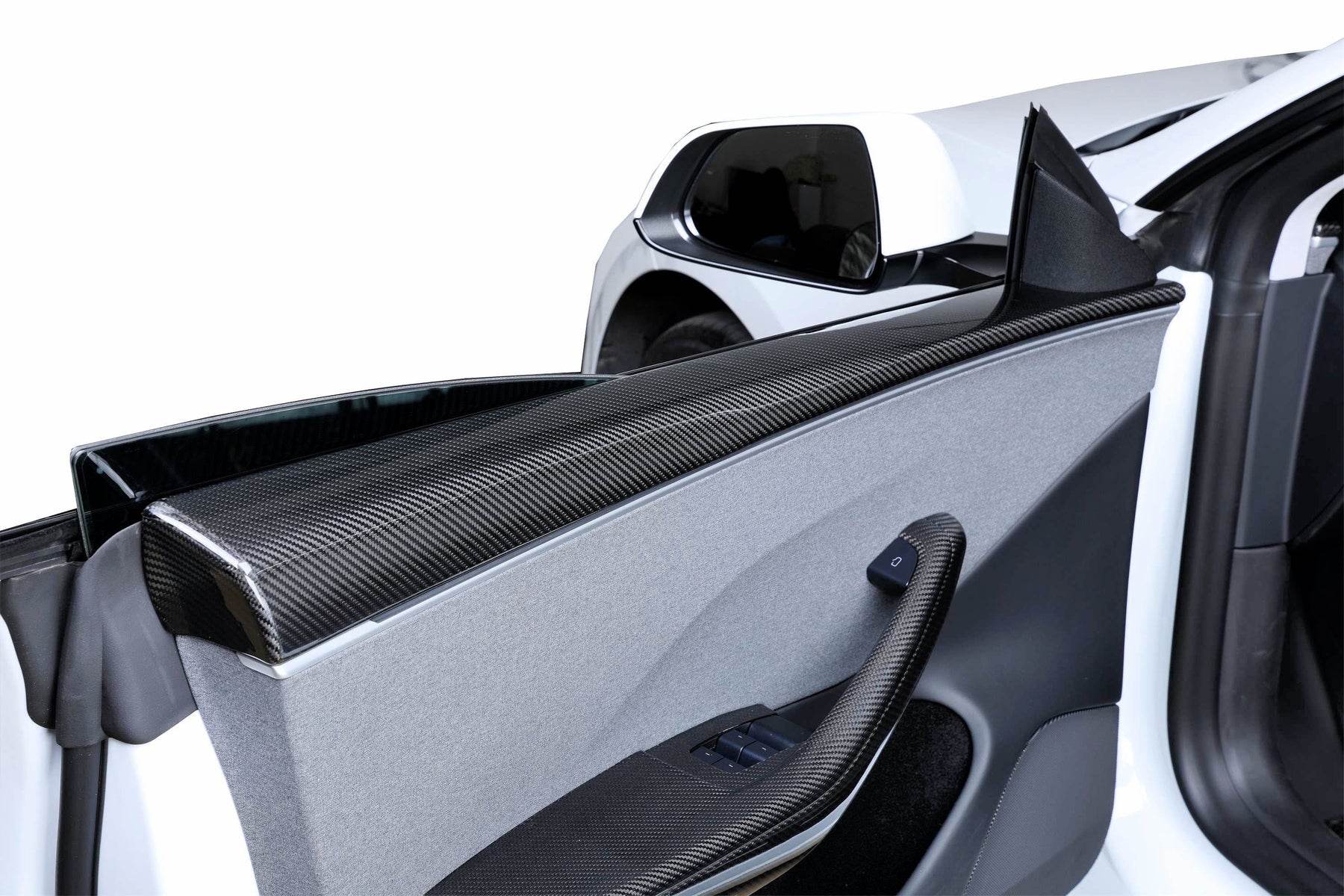 Give your Model 3 interior the ultimate GLOSS CARBON FIBER upgrade with these Genuine Carbon Fiber Door Upper Trim Overlays
