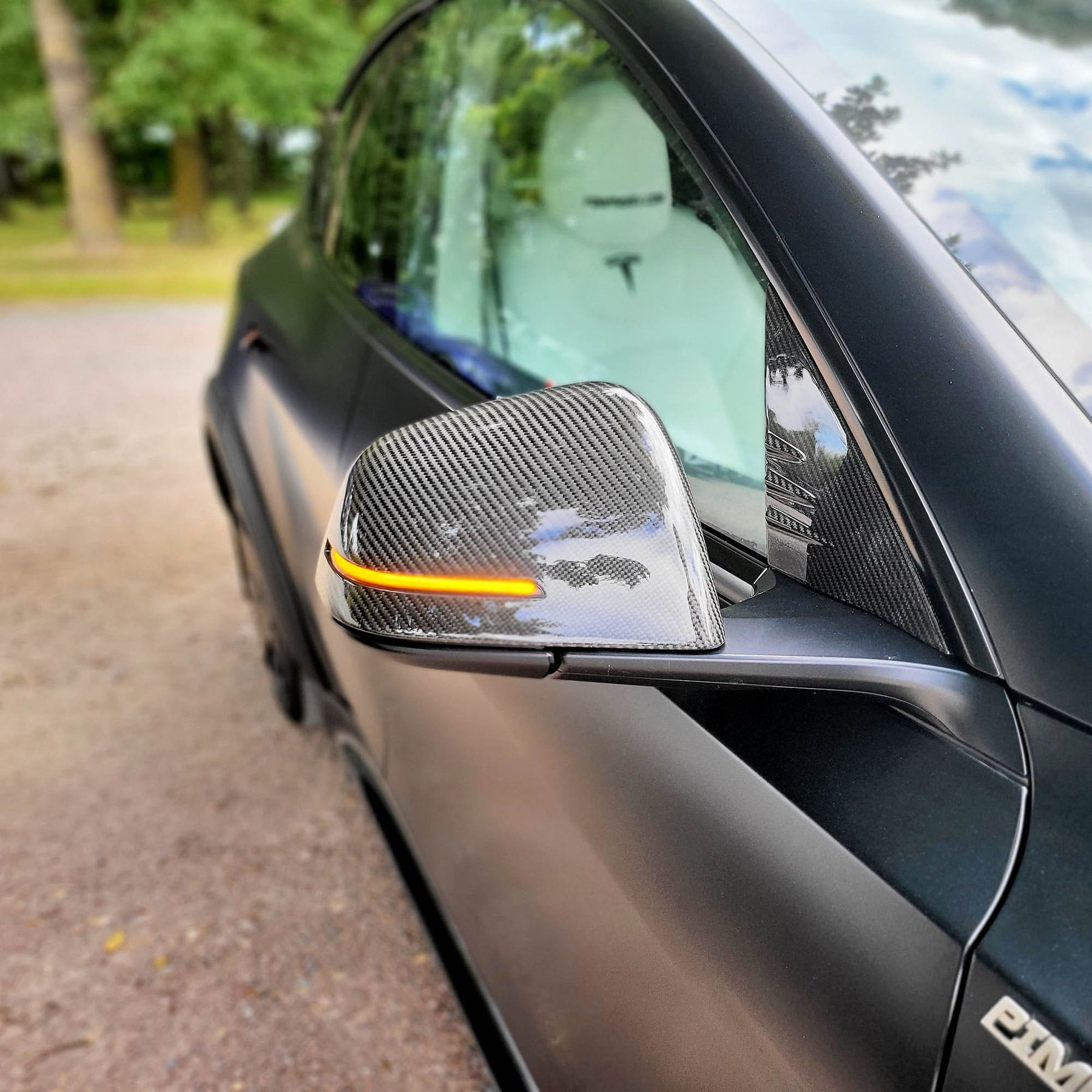 Now crafted from authentic carbon fiber, these side mirrors with built-in turn signals seamlessly blend the elegance of carbon fiber with the practicality modern cars should have had from the factory, especially Tesla.