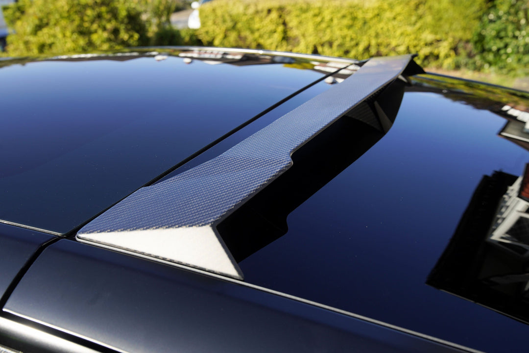 Introducing the VERTEX Authentic Carbon Fiber Roof Spoiler, an exclusive design tailored specifically for the Tesla Model Y. Featuring an exquisite Herringbone Carbon Fiber Finish, this roof spoiler is a unique creation, entirely crafted in-house by Pimp My EV, and is sure to capture everyone's attention!